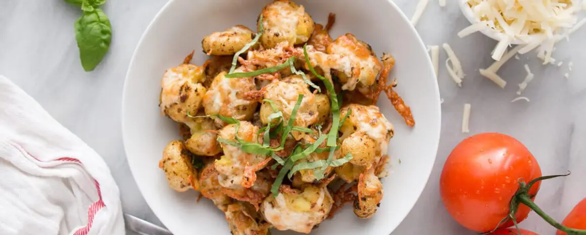 Place seasoned potatoes on a parchment or foil lined baking tray and smash with a fork. Top with cheese and bake for 15 minutes or until cheese is melted and golden brown.