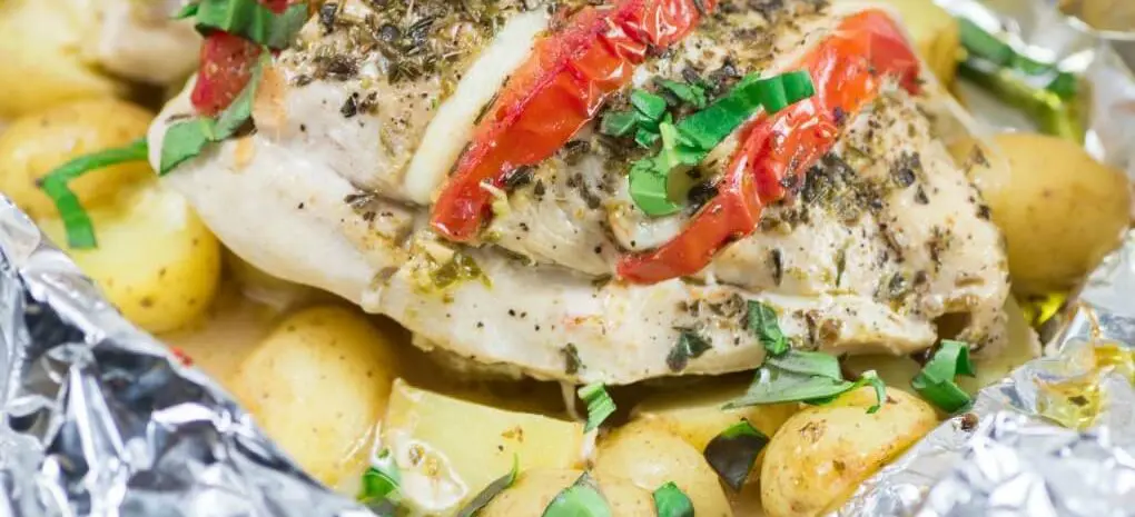 Place directly on grill for 30 minutes of until chicken reads 165° F and potatoes are tender.