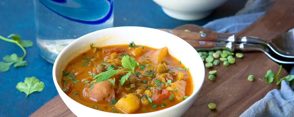 Easy, vegan, and delicious! This Southwestern Instant Pot Split Pea Soup with Potatoes is fantastic for any night of the week.